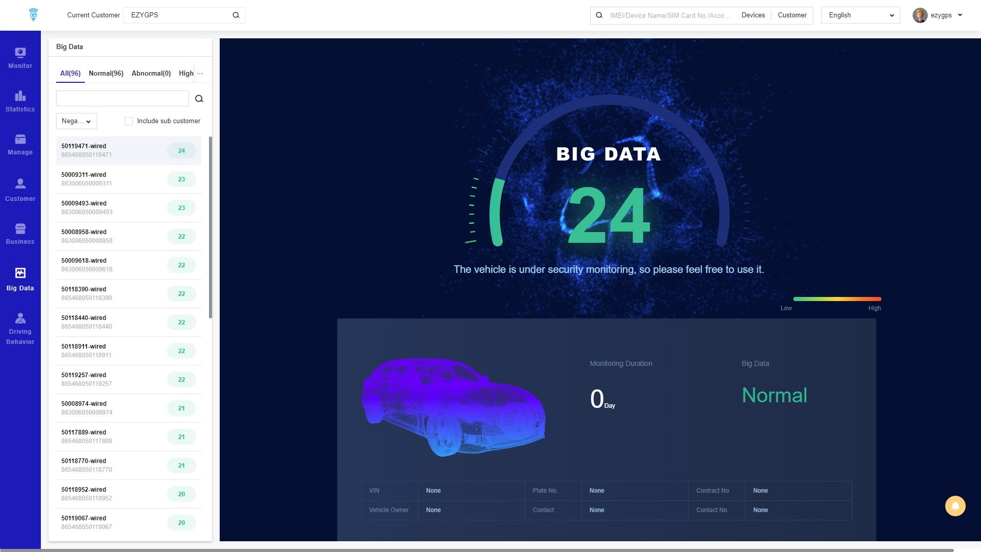 - Analysis of Driving Playback: Shows on a heat map the most common routes and where the vehicle has stayed the longest. Below the map the records show the Stay Address, Stay Time, and Stay Duration.