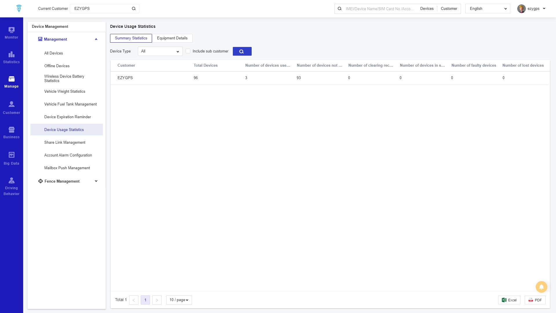 On the Device Usage Statistics page, it displays the usage of the Device in the store.