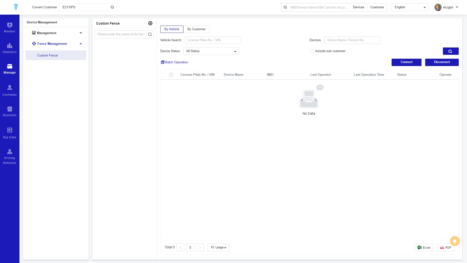 OWhen clicking Fencing Management it will take one to the Custom Fence page. This page help you to create a Geofence for vehicles and customers.