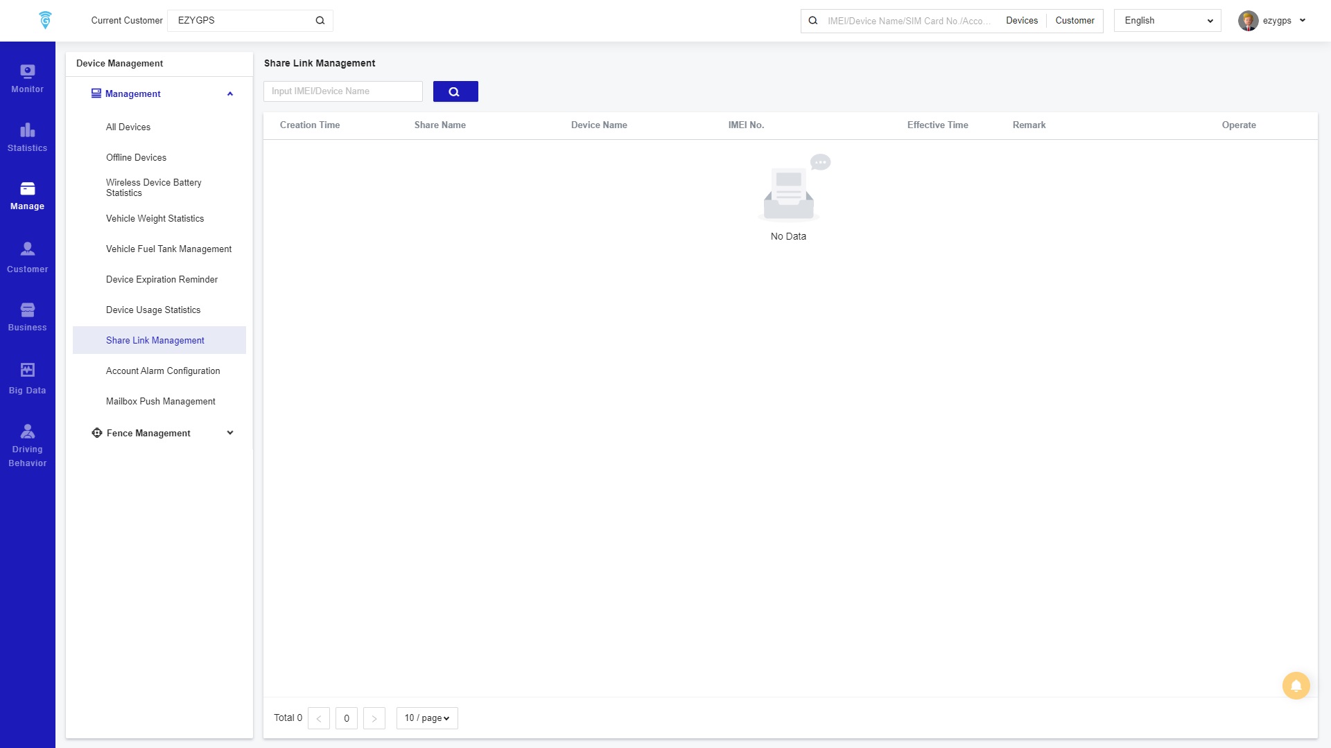 On the Sharing Link Management page one can show in detail the time when the device positioning sharing link under the store was created, and the sharing name, device name, device number and other relevant information. It keeps a record of every time information and reports have been shared from the software.
