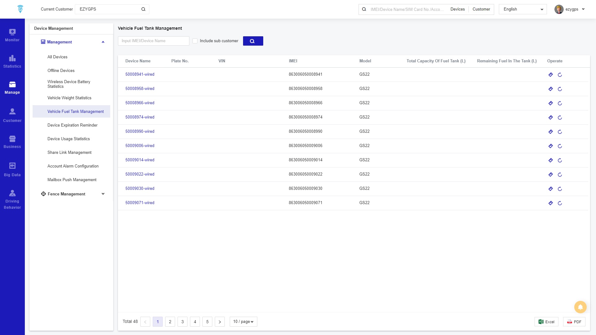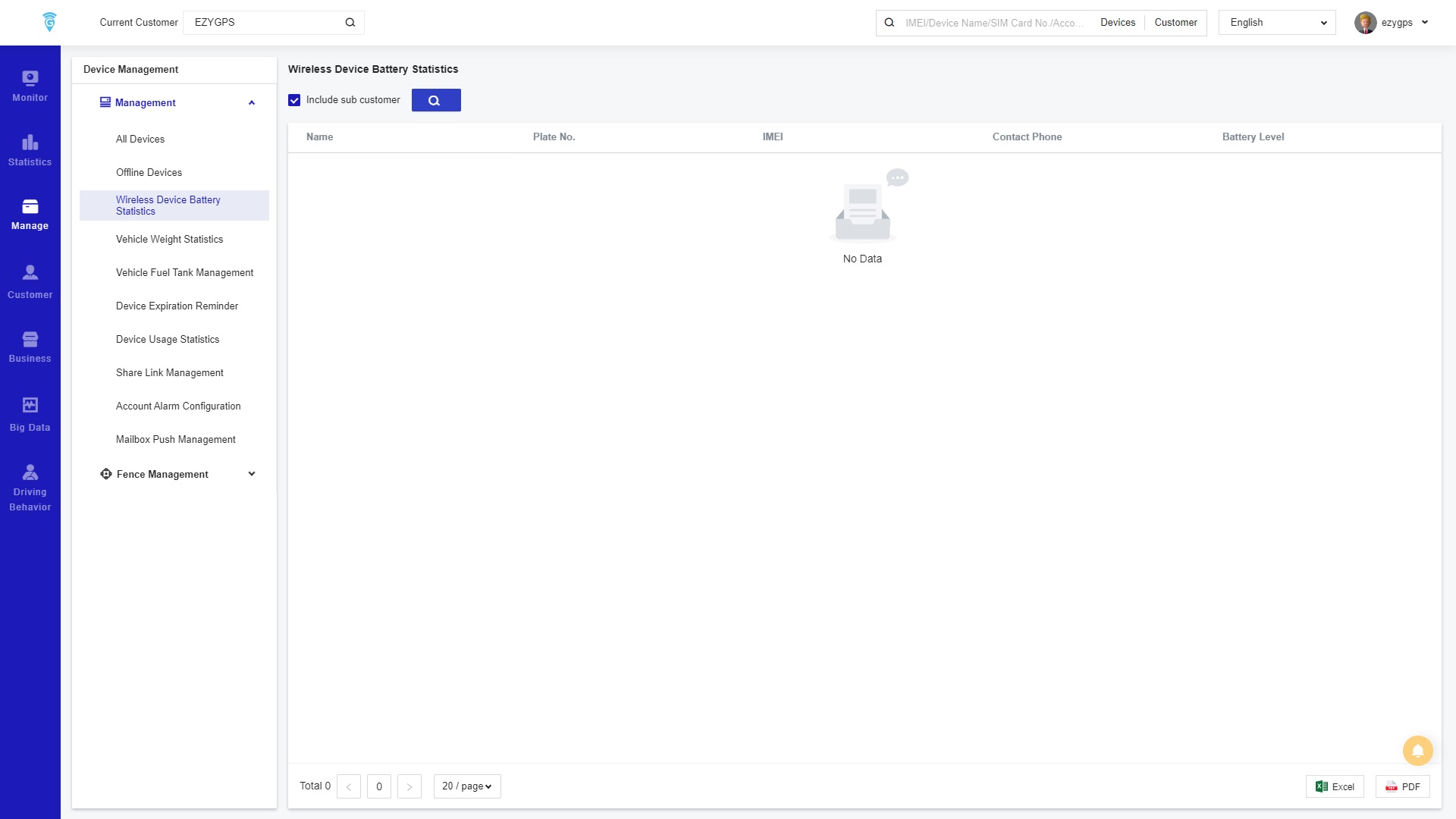 The Wireless Device Battery Statistics page of management is to display the remaining battery power of EZY GPS’s GS22 wireless tracking devices that connect to the ODBII port.