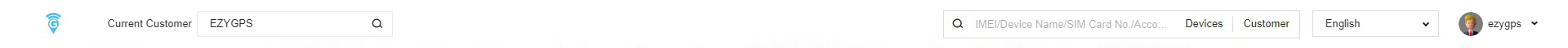 Device Search Bar: This search bar supports searching for IMEI/Device Number, Device Name, SIM Card Number, Account Name for a quick search. Click on the “Devices” button on the right to display the search result as vehicle device details or click on the “Customer” button to display the device attribution account.