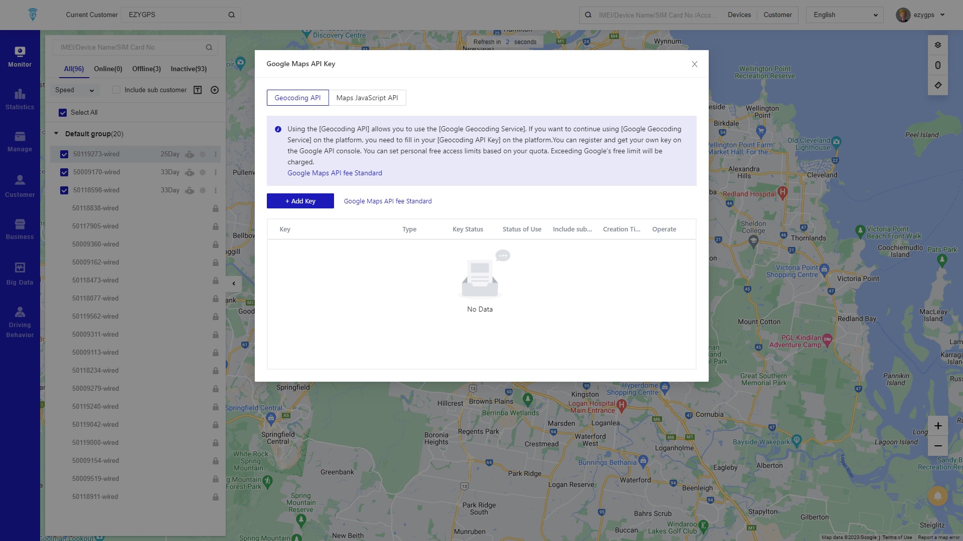 Google Maps API Key:This page changes the address resolution in the account to Google Maps address resolution. This setting requires Google Cloud Platform to obtain the Google Maps key for configuration.